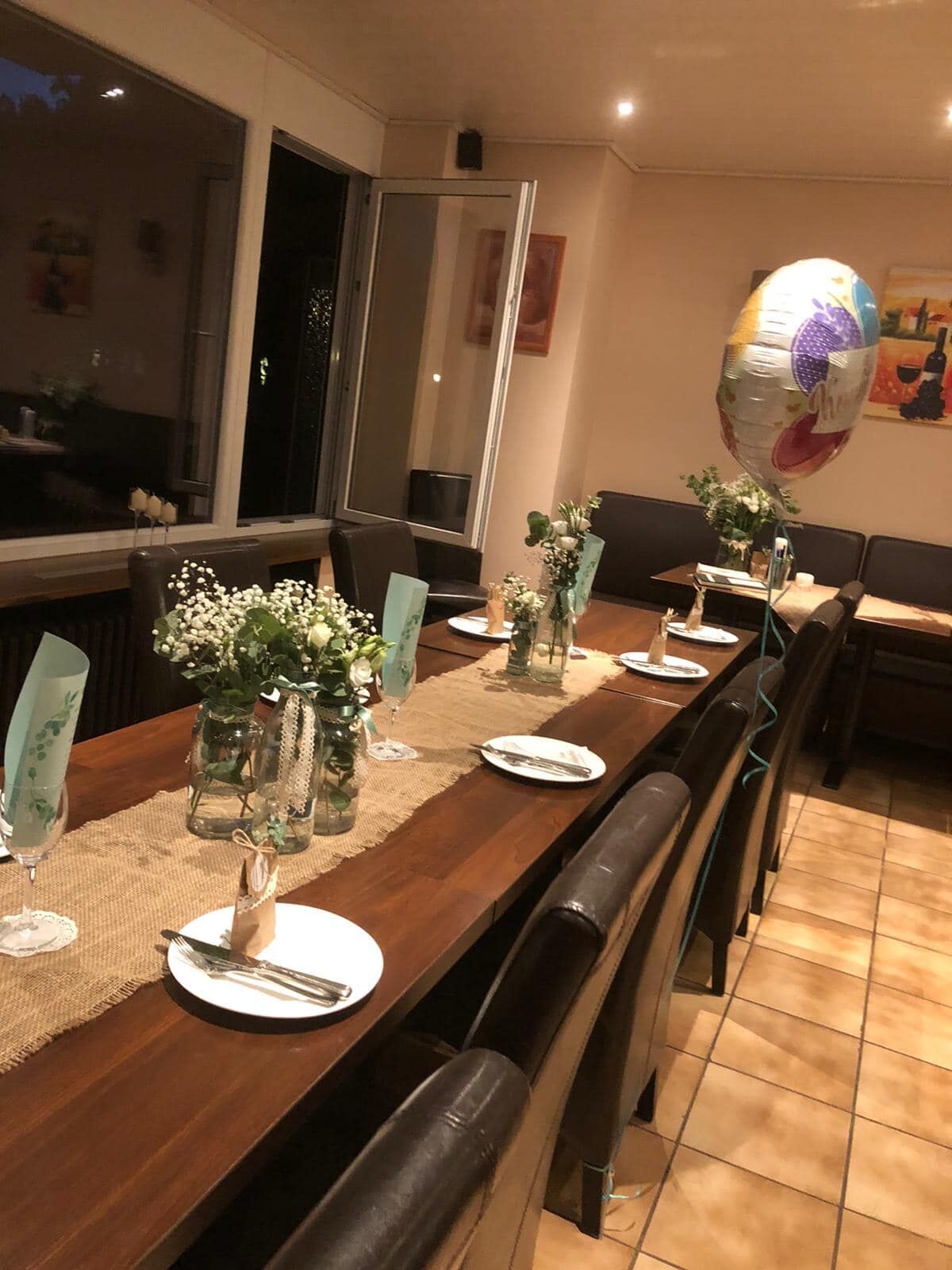 Bei uns können Sie auch gerne Ihre Vierbeiner mitnehmen. Reservieren Sie gerne direkt bei uns – wir freuen uns auf Ihren Besuch. Nehmen Sie direkt Kontakt zu uns auf – per Telefon unter +49062218789563. Wenn Sie lieber gemütlich bei sich zu Hause essen mögen, können Sie von unserem Lieferservice profitieren oder die gewünschten Speisen einfach zum Mitnehmen bei uns abholen. In unseren Räumlichkeiten lassen sich wunderschöne Feste ausrichten. Wir stehen Ihnen für Ihre privaten Feiern gern zur Seite. Wir bieten unsere Räumlichkeiten auch gerne für Hochzeiten oder andere Großveranstaltungen an. Melden Sie sich bei uns, wir helfen Ihnen, diesen ganz besonderen Tag nach Ihren Wünschen zu gestalten. Montag ist bei uns Ruhetag. An allen anderen Tagen bedienen wir Sie gerne.